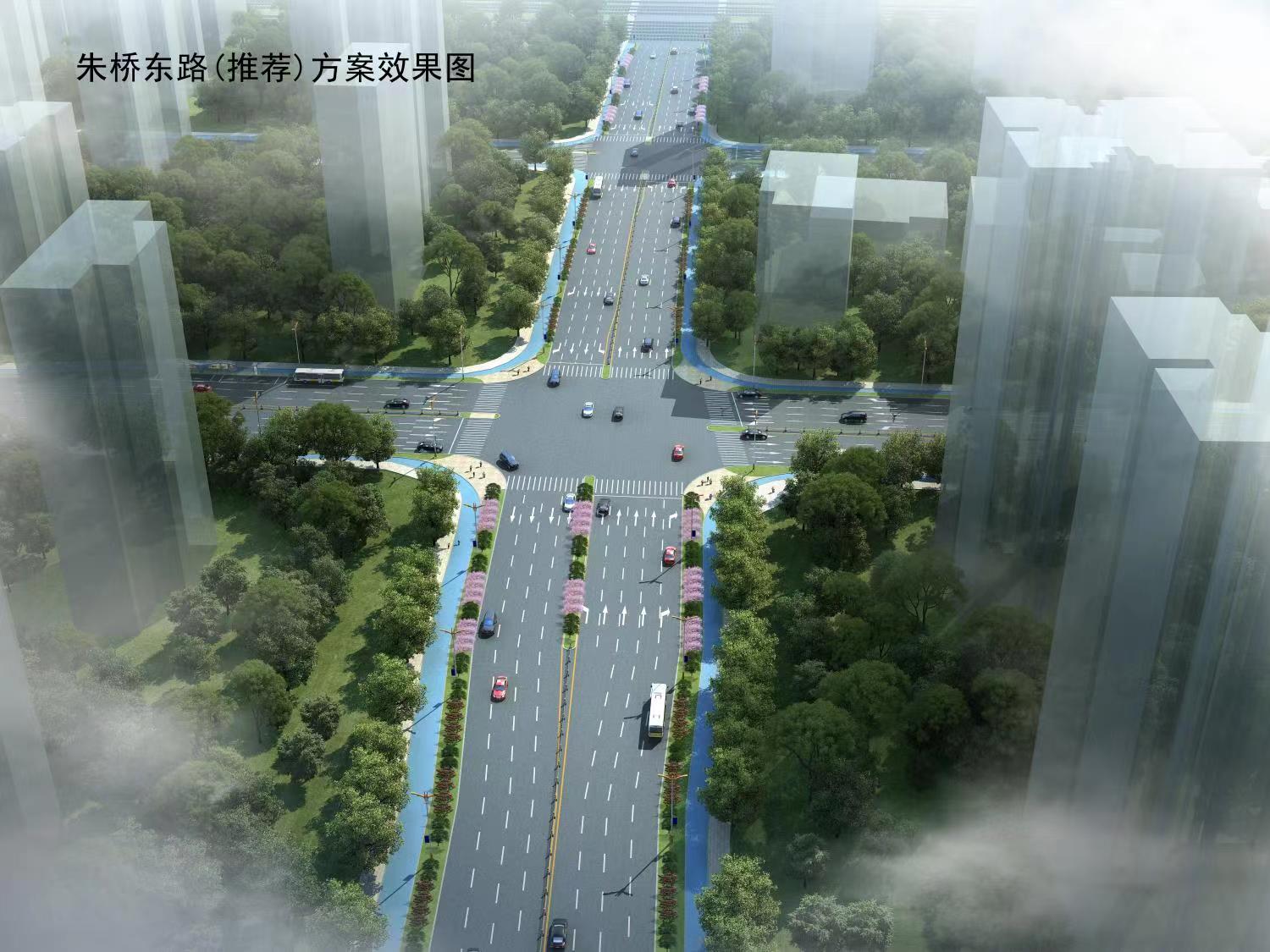 5)朱橋東路西起東站西路,東至站前三路,全長約166m,規(guī)劃為城市次干道,道路紅線寬為44m,雙向8車道,設(shè)計(jì)速度為50km/h。