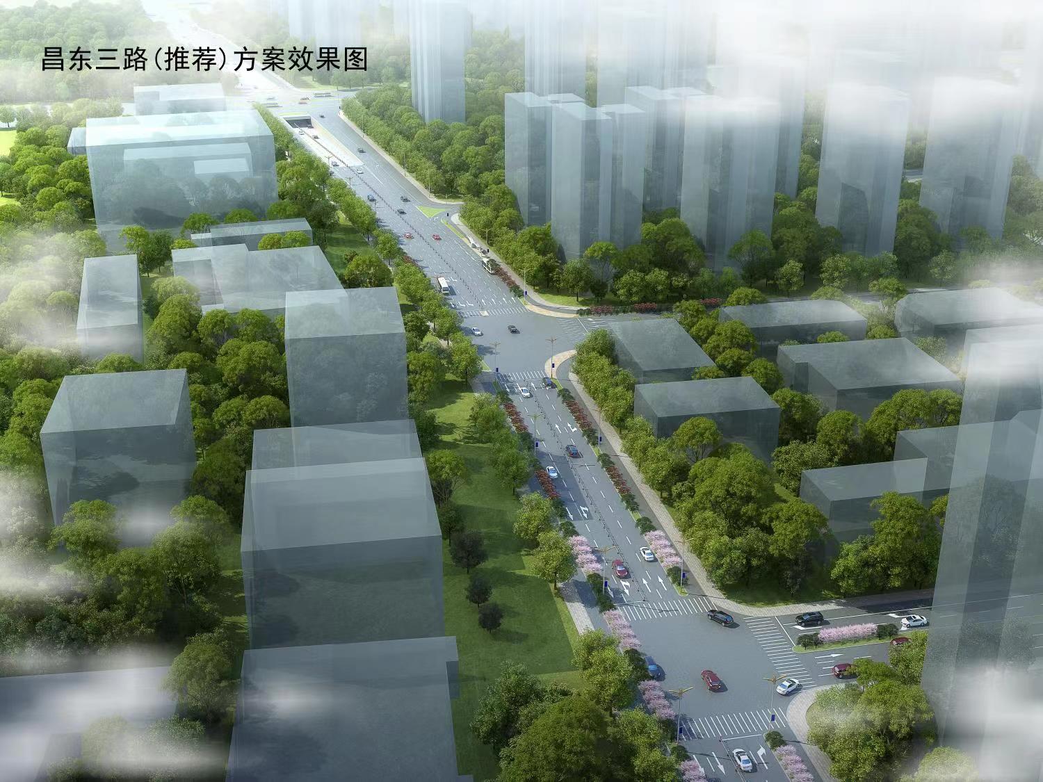 6)昌東三路西起胡板路,東至站前三路,全長812m,規(guī)劃為城市次干道,道路紅線寬為32m,雙向4車道,設(shè)計(jì)速度為40km/h。